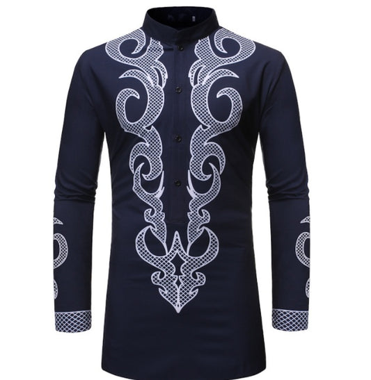 African Dashiki Robe Print Dress Shirt for Men