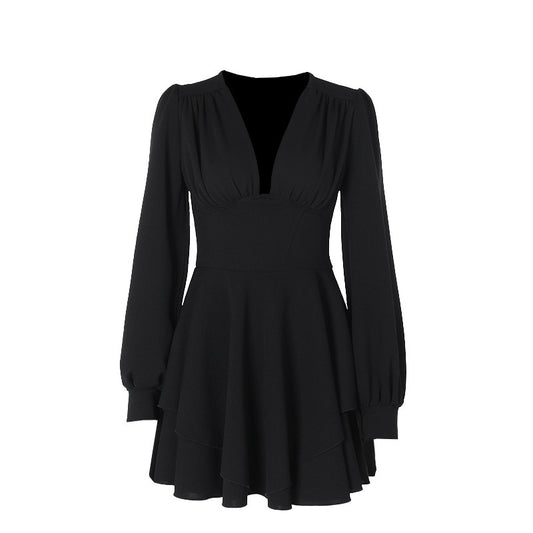 Elegant Slim V-neck Pleated Dress Women