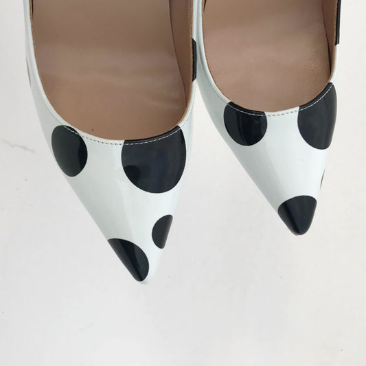 Black And White Circle Color Matching Wave Point High Heel Shoes