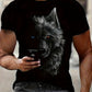 3D Digital Cool Wolf Contrast Color Eye Pattern Round Neck T-shirt Men
