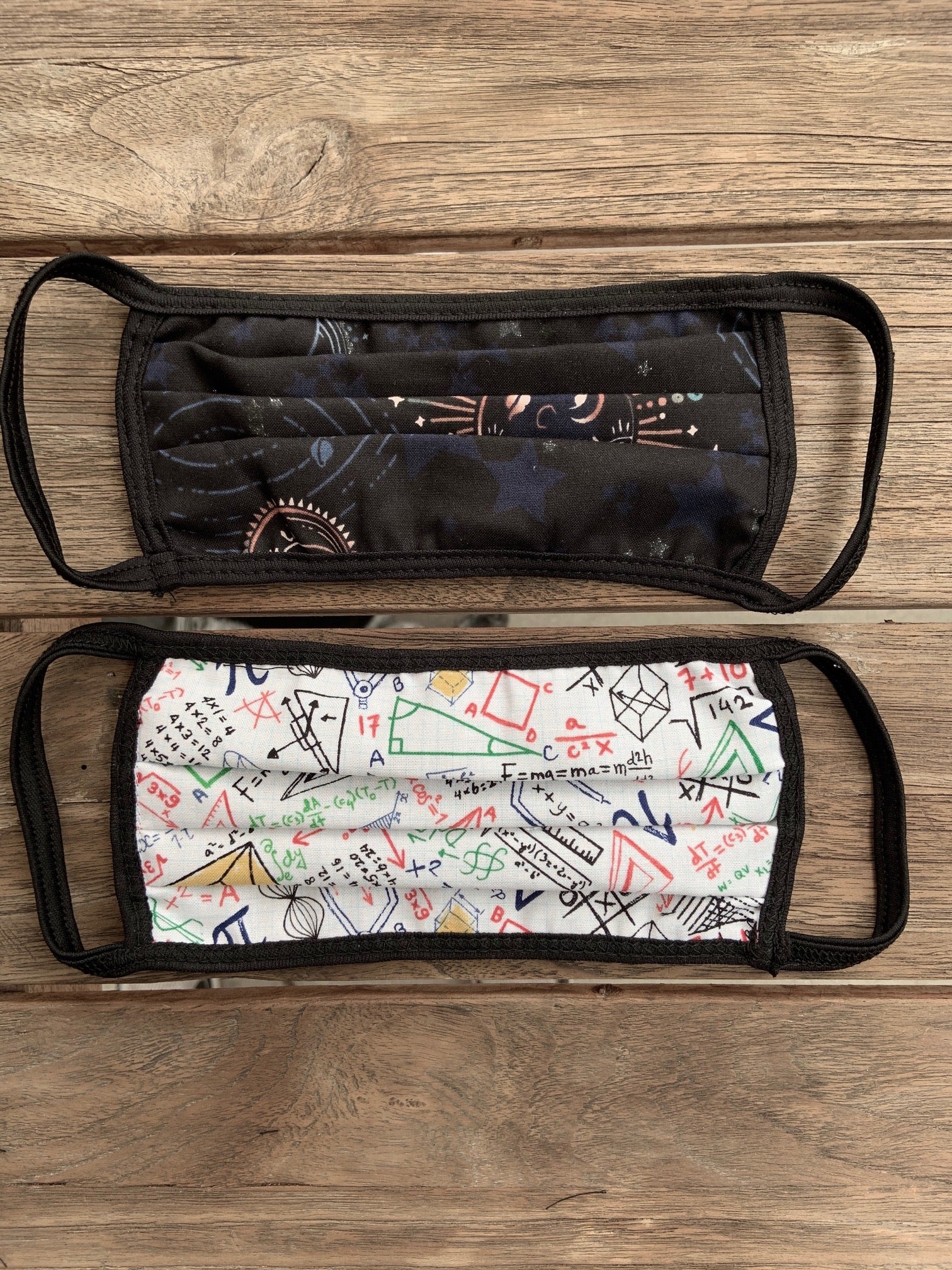 The ultimate quirky cute face mask! This 100% cotton pleated face mask is reversible with 2 fun prints. One side is our celestial print & the other side is our colorful math print. Pair with one of our dresses or separates for added retro vibes!