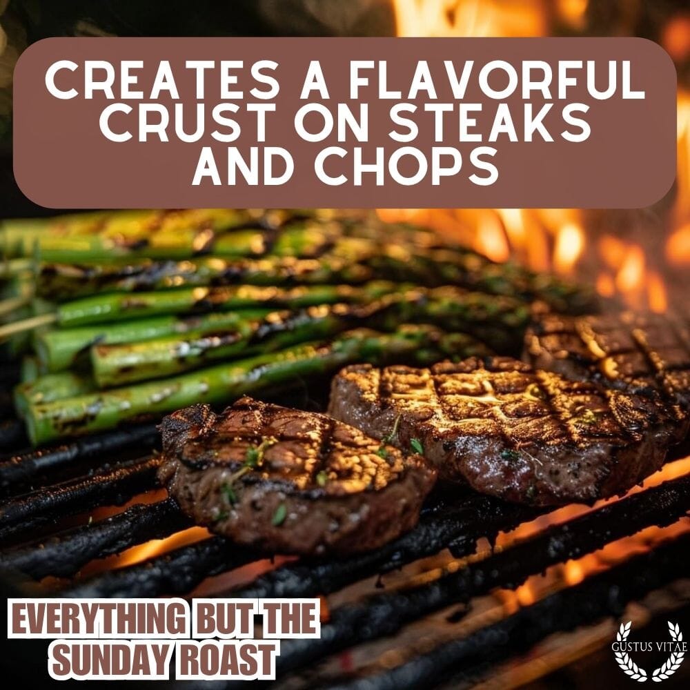 Crafted in small batches using only the best in all natural ingredients, our Sunday Roast Seasoning is the ultimate marinade and rub for all manner of beef cuts, wild game from venison to rabbit, and lighter roasted fare like chicken and turkey. In addition to its many uses with proteins, this gourmet seasoning makes a delicious, near-instant sauce when mixed with extra virgin olive oil, Greek yogurt, sour cream, or crème fraîche, and gives steaks and chops and beautiful crust when seared on the BBQ or in a ripping hot cast iron pan.