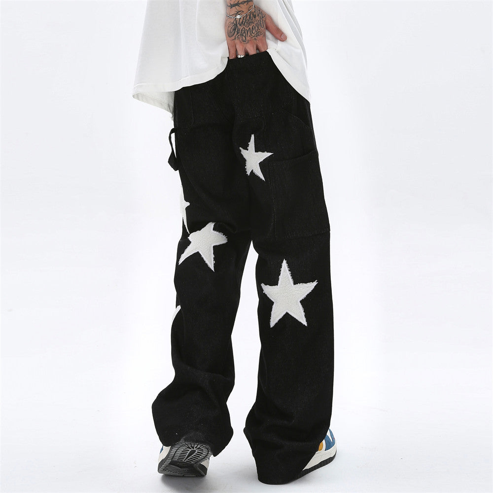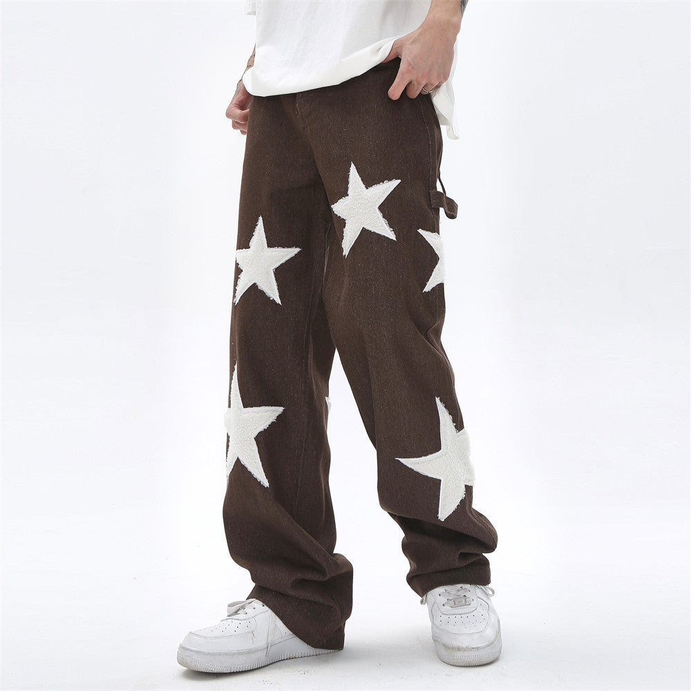 Five Pointed Star Flocking Embroidered Jeans For Men