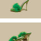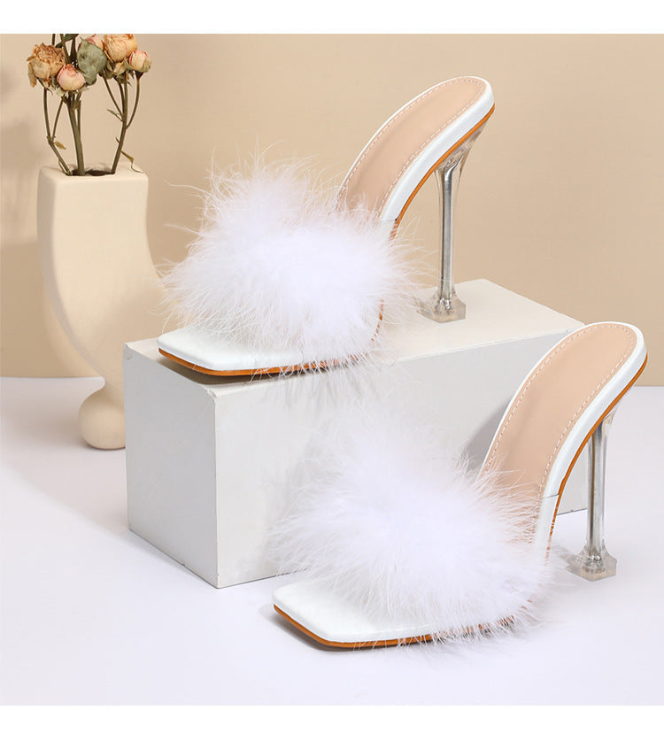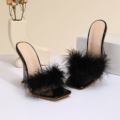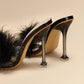 Furry Transparent Broadband Crystal Heel Stiletto Sandals
