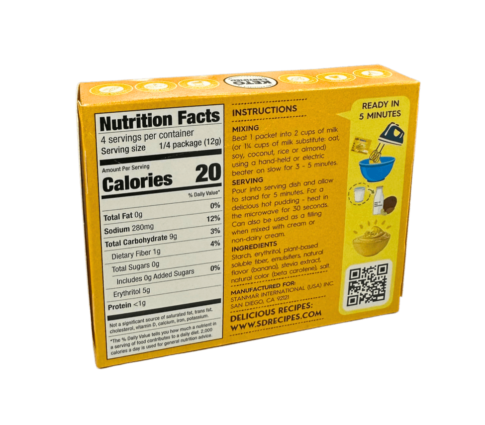 Starch, erythritol, plant-based soluble fiber, emulsifiers, natural flavor (banana), stevia extract, natural color (beta carotene), salt.