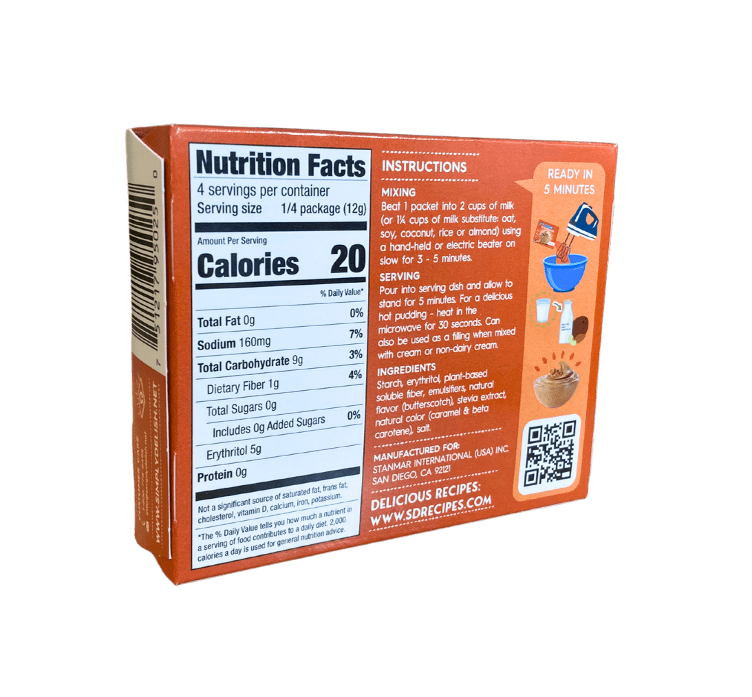 Starch, erythritol, plant-based soluble fiber, emulsifiers, natural flavor (butterscotch), stevia extract, natural color (caramel & beta carotene), salt.