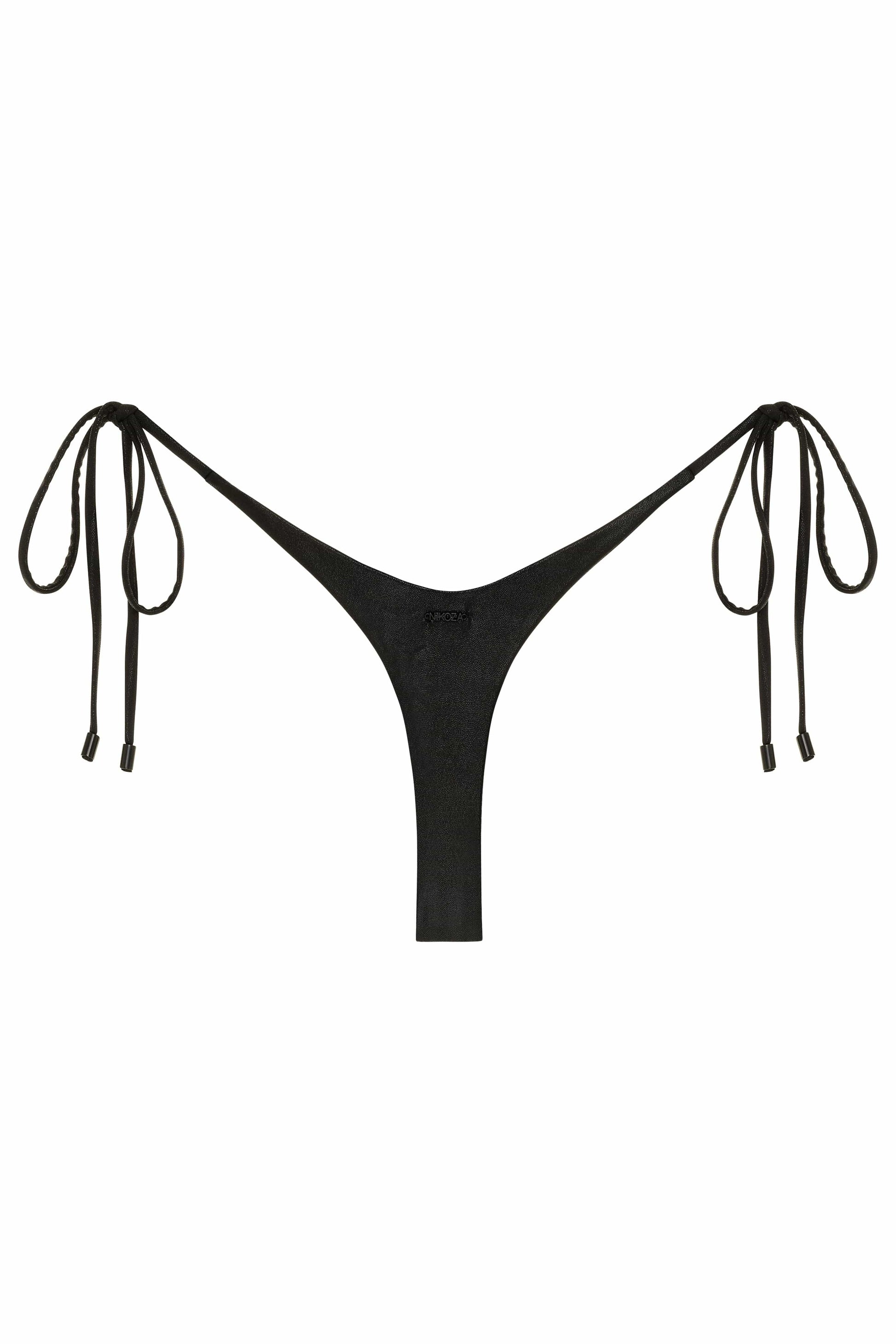 Get ready to shine and make a splash with our captivating black shimmering thong bikini! This bikini is sure to turn heads and make you the center of attention!
