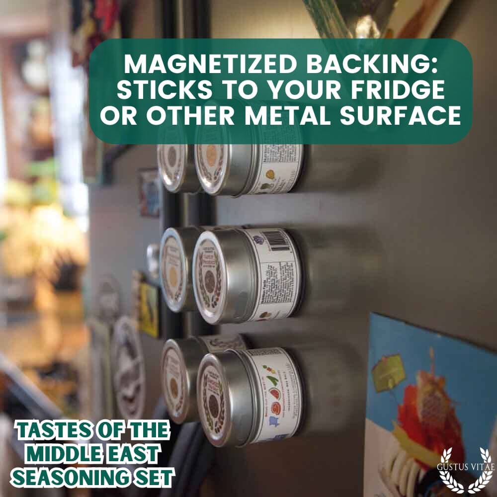This thoughtful six-pack collection of authentic Middle Eastern-themed seasonings and spice blends is the perfect addition to any home cook's pantry. Our artisanal blends are made with sustainably sourced, all-natural, non GMO ingredients, and made in small batches, before being packed by hand in our unique magnetic tins. Each spice blend is carefully crafted to bring out the unique flavors and aromas of traditional Middle Eastern cuisine.