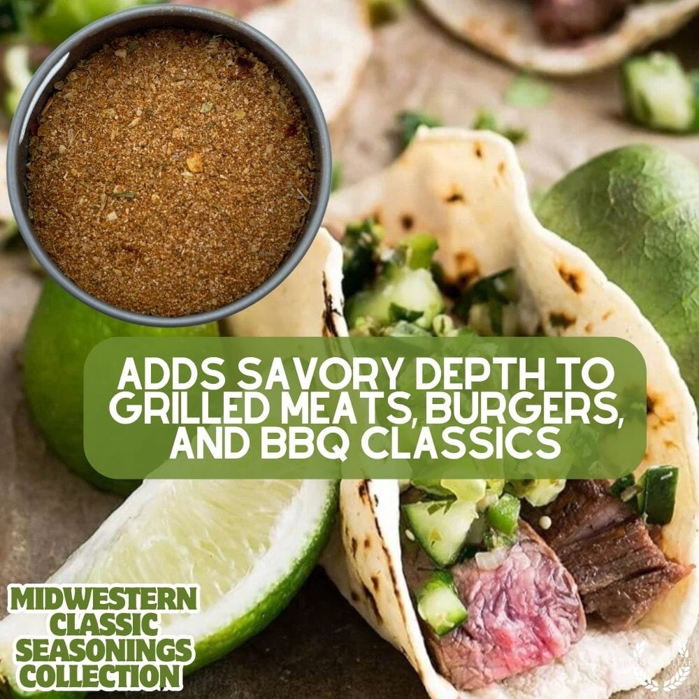 - Everything But The Taco Seasoning: Paprika, Garlic, Salt, Red Pepper Flakes, Sugar, Oregano, Black Pepper, Red Pepper, Coriander, Chipotle Peppers, Chili Peppers, Jalapeno Peppers, Cilantro, White Pepper, Fenugreek, Fennel, Nutmeg, Cardamom, Cloves, Basil, Rosemary, Celery, Thyme, Marjoram, Ginger, Cumin, Cinnamon.