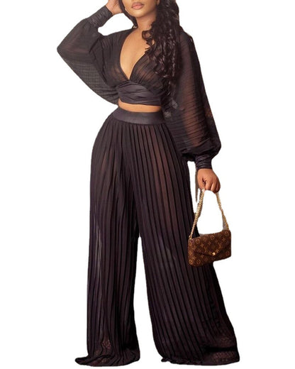 2 Piece Set Elegant Solid Long Sleeve Blazer Suit And Pants For Women