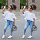 2 Piece Set Of Women's Short Sleeve Slim Fit Fashion Short V-Neck T-Shirt