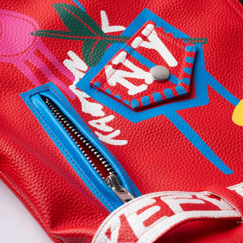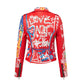 Slim Long Sleeve Graffiti Belt Leather Jacket For Women