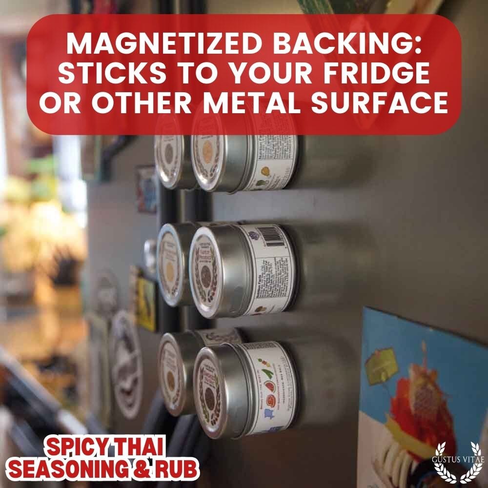 - Magnetized backing: tins sticks to your fridge or other metal surface.