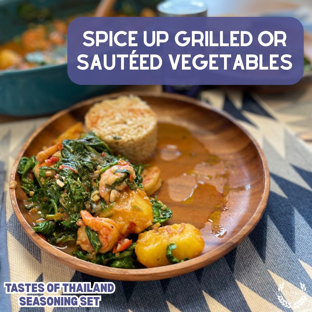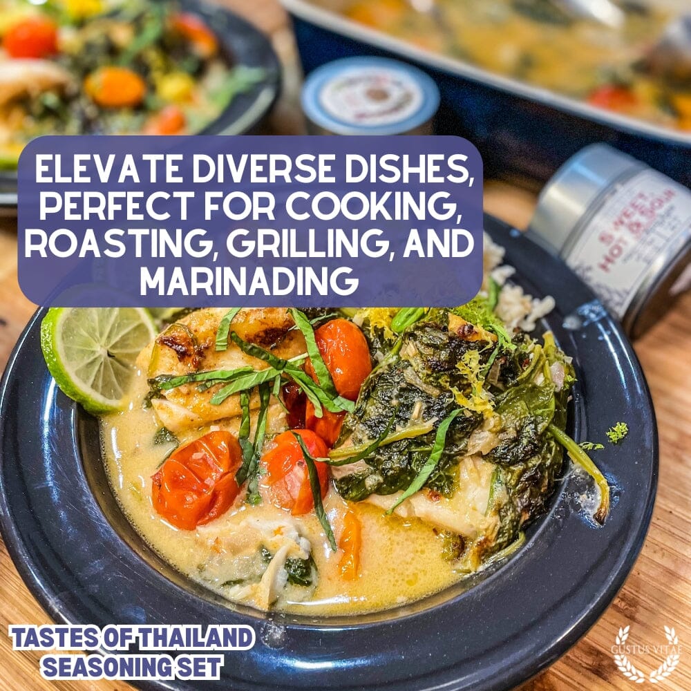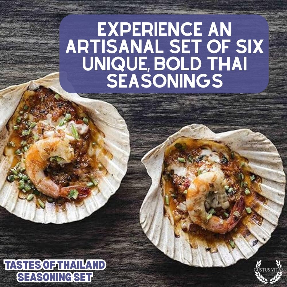 Harness the vibrant flavors of Thailand with this authentic, artisanal set of small batch seasonings, each one a unique homage to the many flavors of Thailand. Crafted by hand in the USA with sustainably sourced, ultra premium all-natural ingredients, all of these six unique spice blends faithfully honors unique elements of Thailand's bold cuisine, from succulent stir fry's to deeply flavorful soups and broths to delicate fish and meat dishes.
