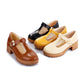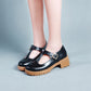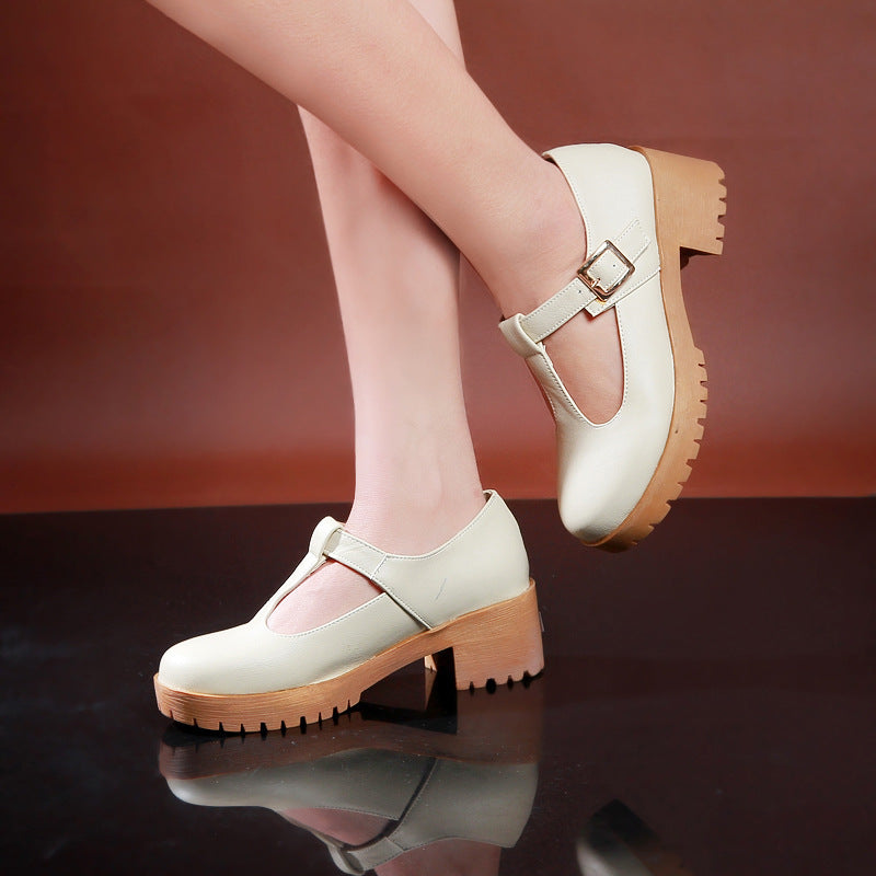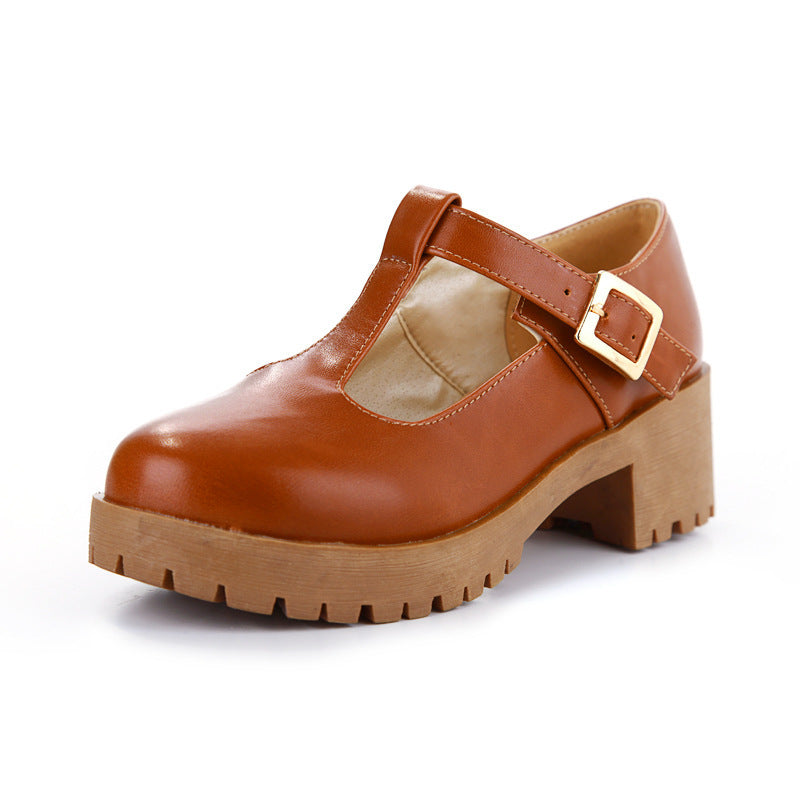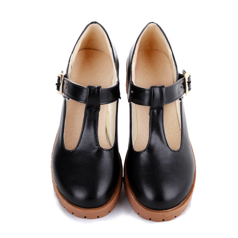 Thick Square Heel T-buckle Belt Student Round Toe Platform