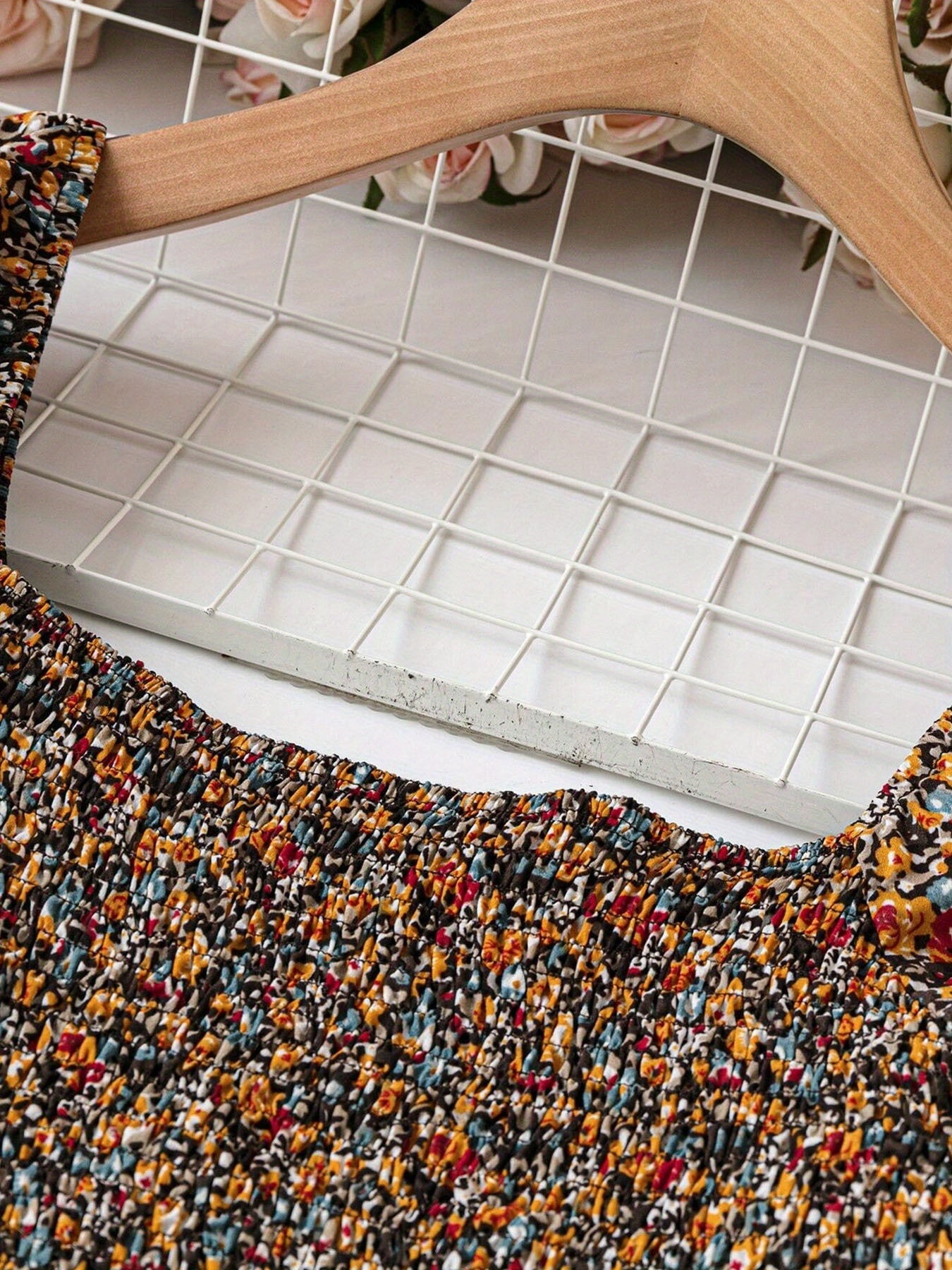 Women's Plus Size Elegant Shirred All-Over Print Blouse